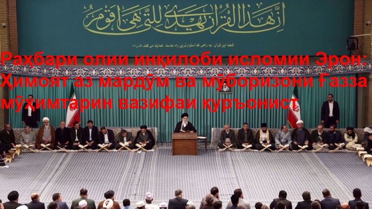 Оятӯллоҳ эмом Хоманаӣ бо таъкид бар ин ки имрӯз дӯнёи Ислом ва озодагони ҷаҳон азодори мардӯми Ғазза ҳастанд, гӯфт: Мардӯми Ғазза мавриди зӯлми касоне қарор гирифтаанд, ки ҳеҷ бӯе аз инсоният набӯрдаанд ва бар ҳамин асос бузӯргтарин вазифа, ҳимоят аз мардуми мазлуми Ғазза ва истодагии шуҷоъонаи неруҳои мӯқовимат ва ҳимоят аз касонест, ки ба мардӯми Ғазза кӯмак мекунанд.